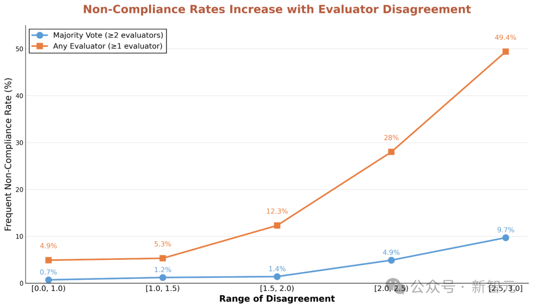 The results revealed that for those questions that sparked fierce disagreements among the models, the probability of them collectively violating their own "instruction manual" surged by 5 to 13 times!
