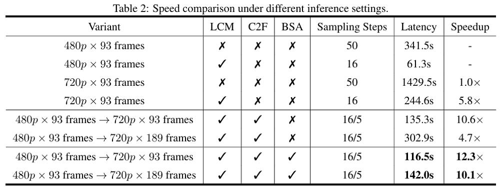 ▲ Inference Speed Comparison of LongCat-Video Under Different Settings